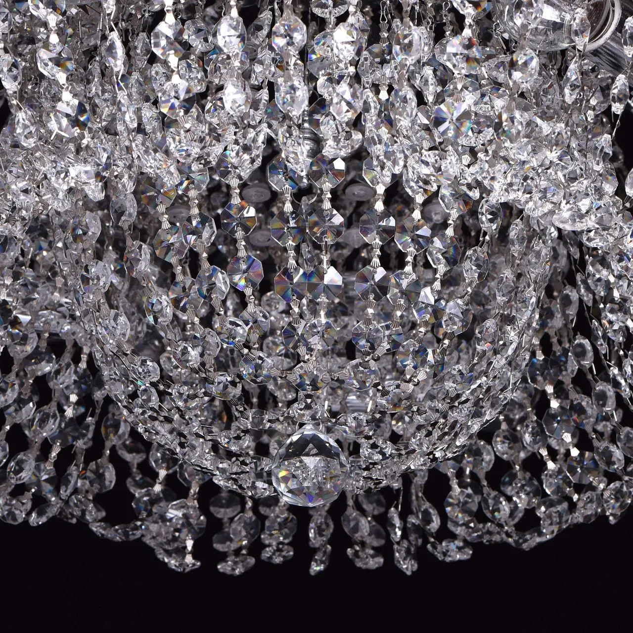 Металлическое основание цвета хрома, декоративные элементы из хрустального стекла.