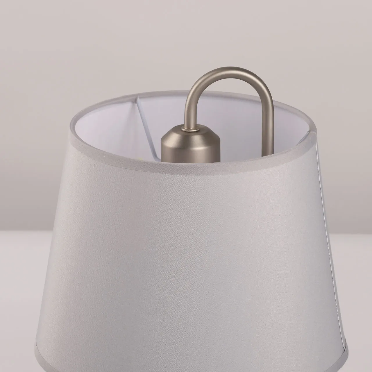 Основание/ металл/ перламутровое серебро Абажур/ текстиль, акрил/ серый, прозрачный