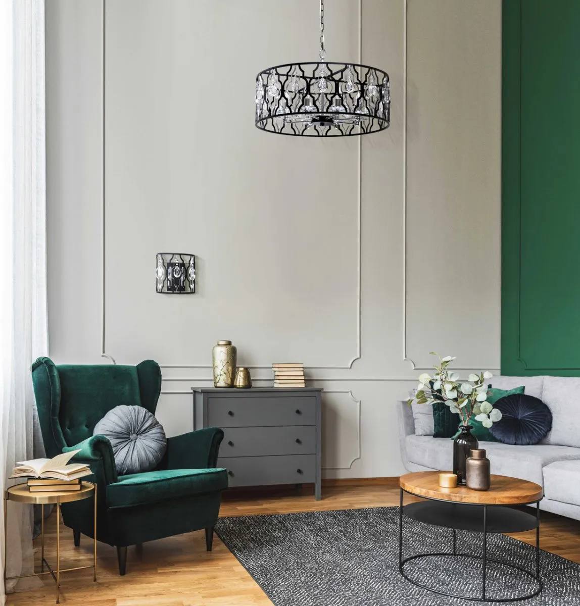 Основание/металл/черный и серебро. Декор/прозрачный хрусталь
